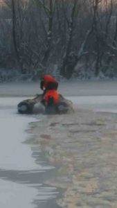Pompierii arădeni au reuşit, pe un ger cumplit, să salveze viaţa unui câine căzut într-o baltă. În aceasta dimineață paznicul unei firme din apropierea bălți Ghilin din Arad a apelat serviciul 112 și a anunțat că un câine ce aparține firmei a vrut să traverseze balta pe gheață, aceasta s-a rupt și câinele a căzut în apă. A fost alertat echipajul de căutare salvare a Detașamentului Arad, format din patru subofiteri, plt. maj. Romeo Negrilă, plt. maj. Ionel Pasca, plt. maj. Florin Macovei și sg. maj. Alin Ochis. Aceştia s-au deplasat la faţa locului cu o autospecială şi o barcă o autospeciala de transport și barcă. La sosirea echipajului câinele se afla la aproximativ 50 m de mal în apă printre sloiurile de gheață. Subofițerii au spart gheaţa pe o porțiune de aproximativ 50 de metri, au înaintat cu barca și au recuperat câinele. Acesta a fost predat proprietarului. Intervenţia s-a desfăşurat în condiţii grele, pe un ger de – 16 grade Celsius, temperatura resimţită fiind de – 28 grade.