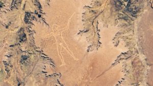 Geoglifa este un desemn de mari dimensiuni realizat cu ajutorul unor linii trasate pe pământ. Cea în cauză măsoară 3,5 kilometri, din creștet și până în vârful degetelor.