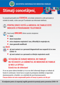 Mai mult, dacă prezintă simptome cum ar fi febra, durerile musculare, tuse, dificultăți de respirație sau stare generală modificată, mai întâi sunați medicul de familie, NU vă prezentați la cabinetul medicului de familie sau la spital, pentru că riscați să infectați și pe alții.
