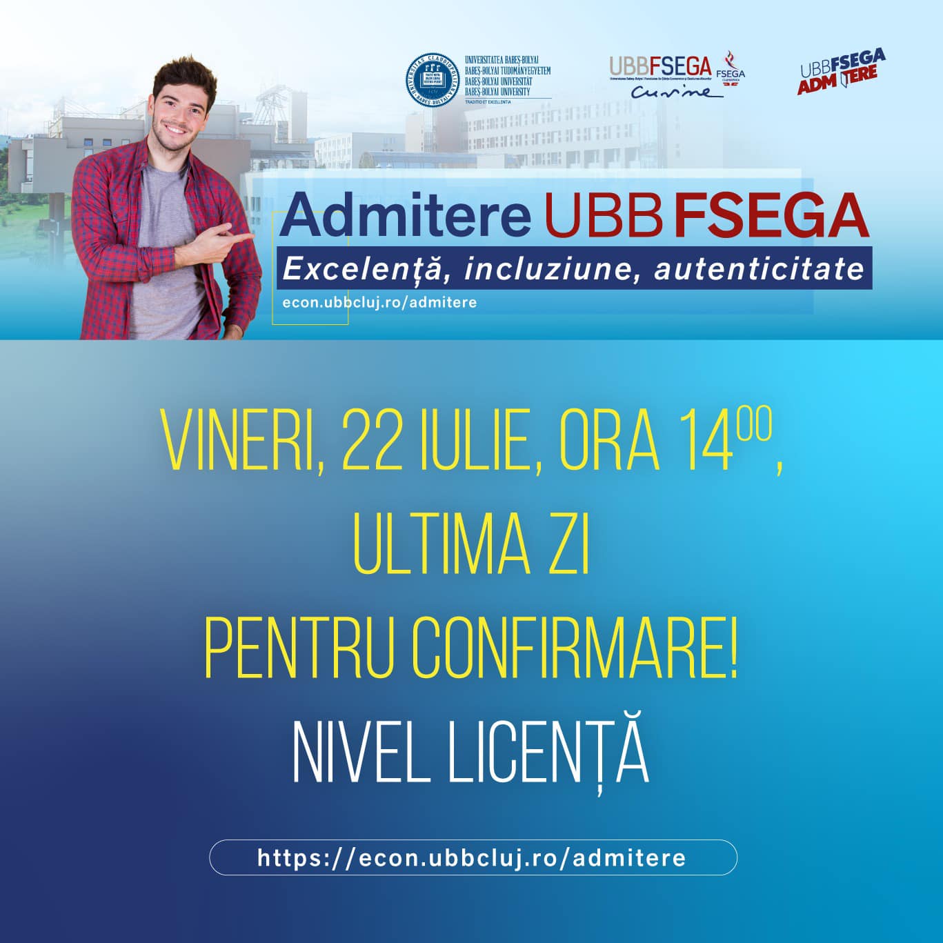 Examenul de admitere la studiile de licență la Universitatea de Medicină şi Farmacie „Iuliu Haţieganu” Cluj-Napoca a avut loc în…