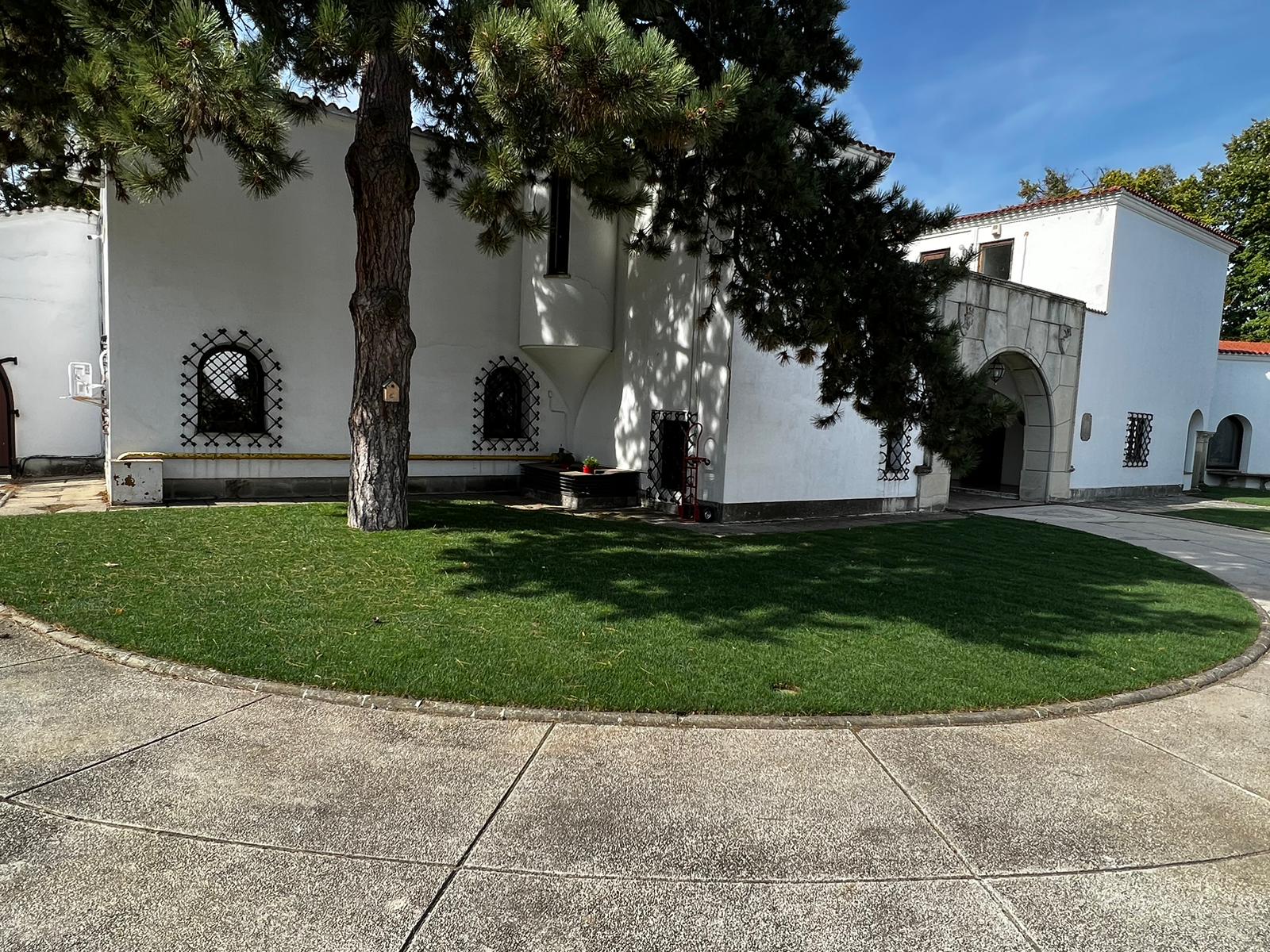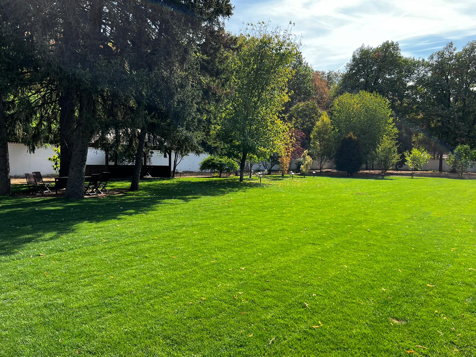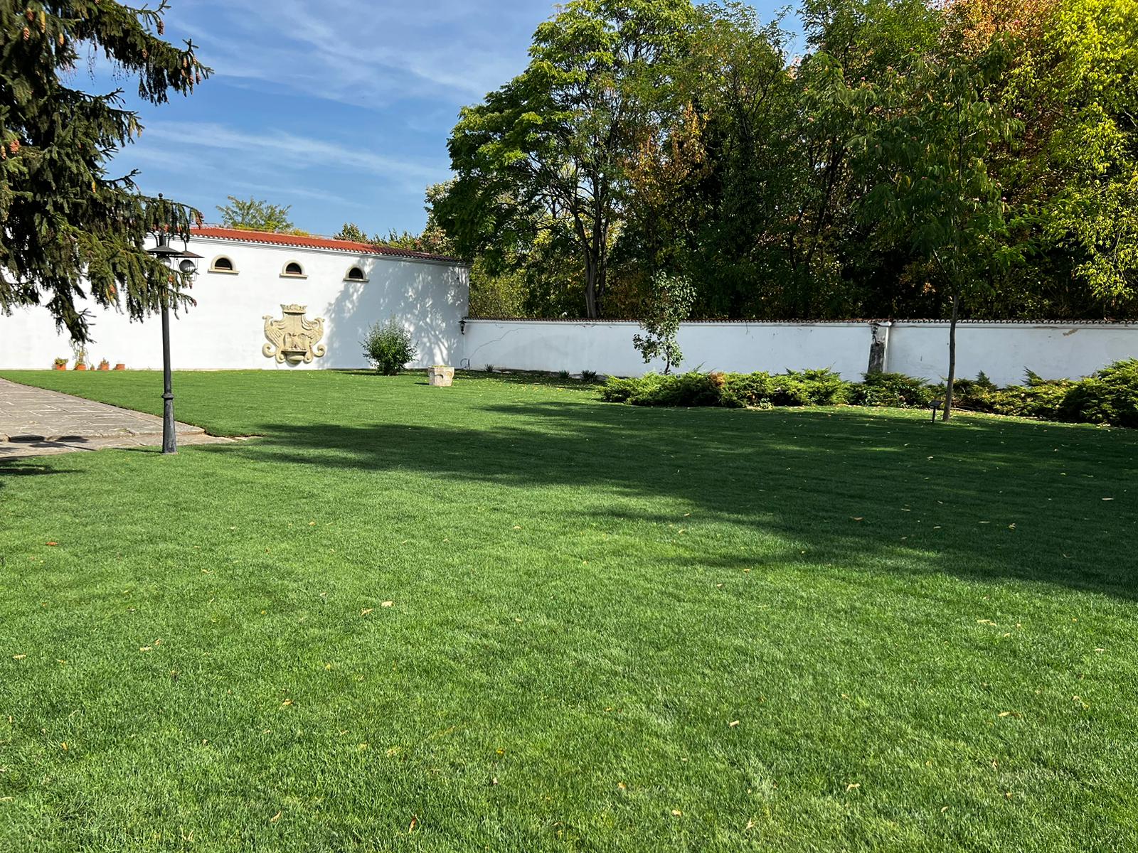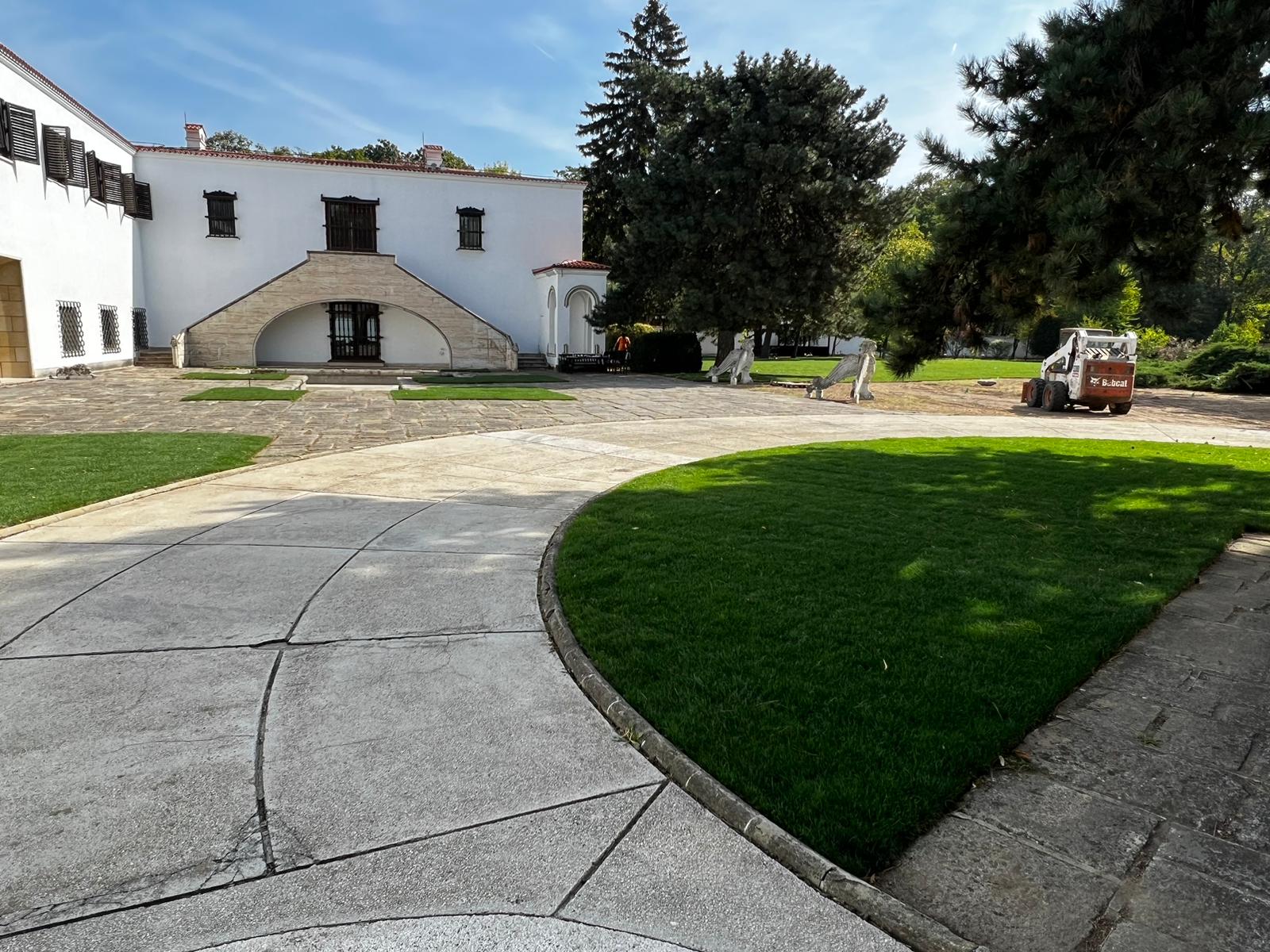 Specialiștii Eco Garden Construct au refăcut spațiile verzi și au înlocuit gazonul din curtea palatului. Refacerea spațiilor verzi a însemnat păstrarea elementelor definitorii ale amenajării peisagistice istorice și a adus, totodată, un plus de frumusețe.