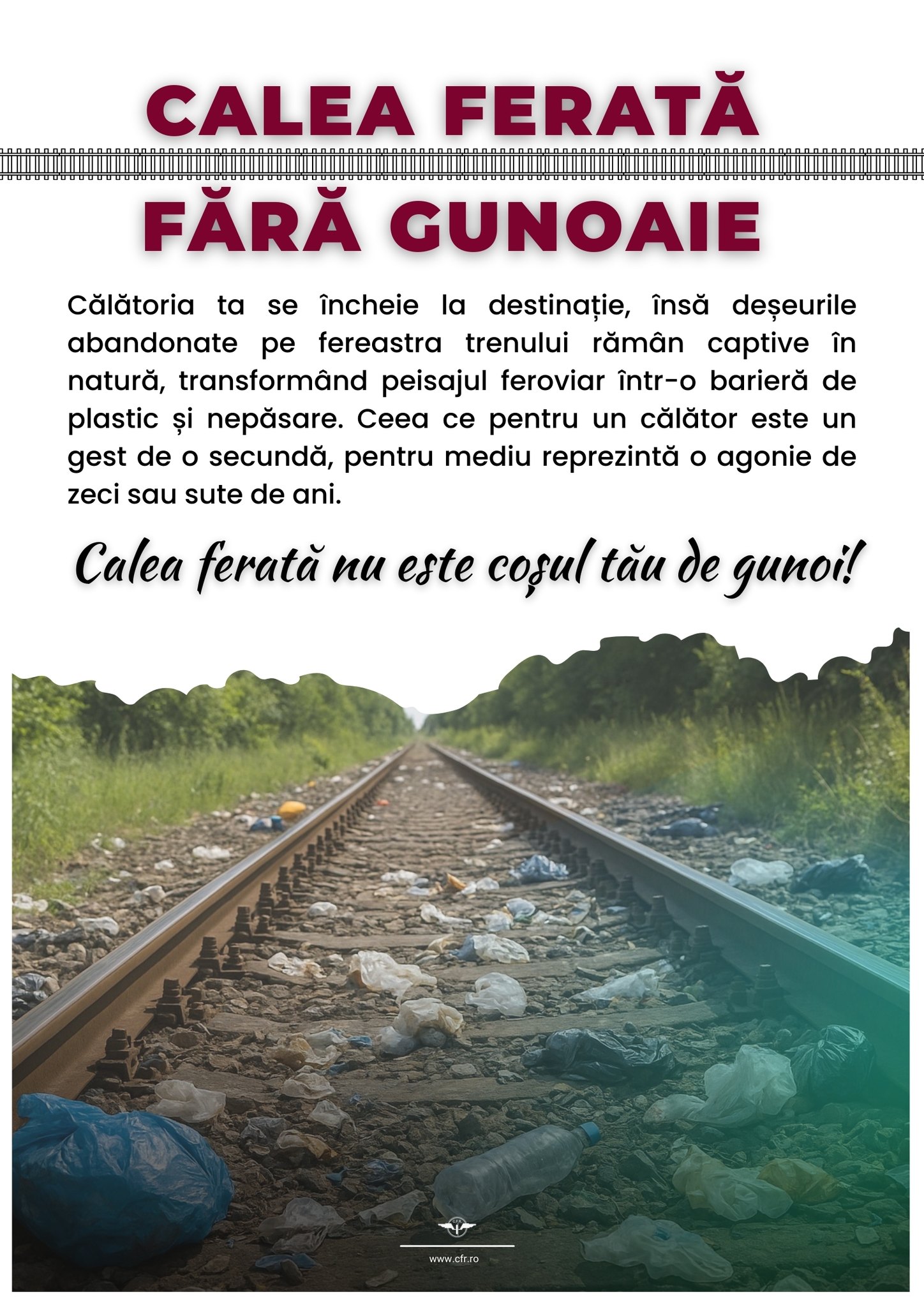Compania Națională de Căi Ferate “CFR” SA derulează campania națională de informare și conștientizare civică „Calea Ferată Fără Gunoaie”, un…