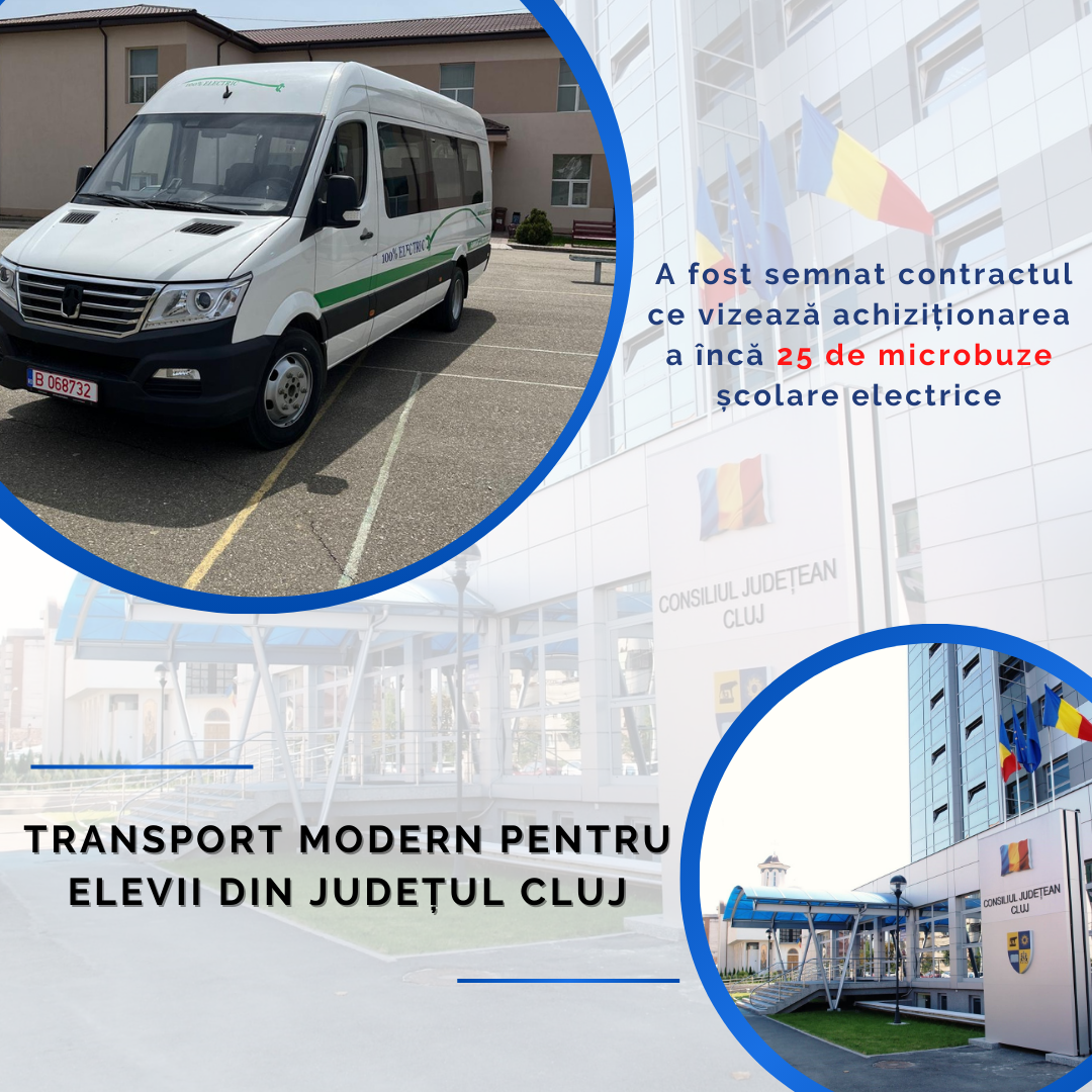 Consiliul Județean Cluj a semnat contractul ce are ca obiect furnizarea a 25 de microbuze electrice pentru elevii clujeni. Investiția…