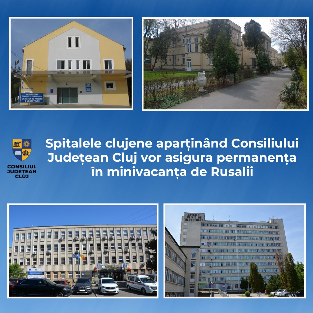 Unitățile sanitare aflate în subordinea Consiliului Județean Cluj vor asigura permanența pe întreaga durată a minivacanței prilejuite de sărbătoarea Rusaliilor,…